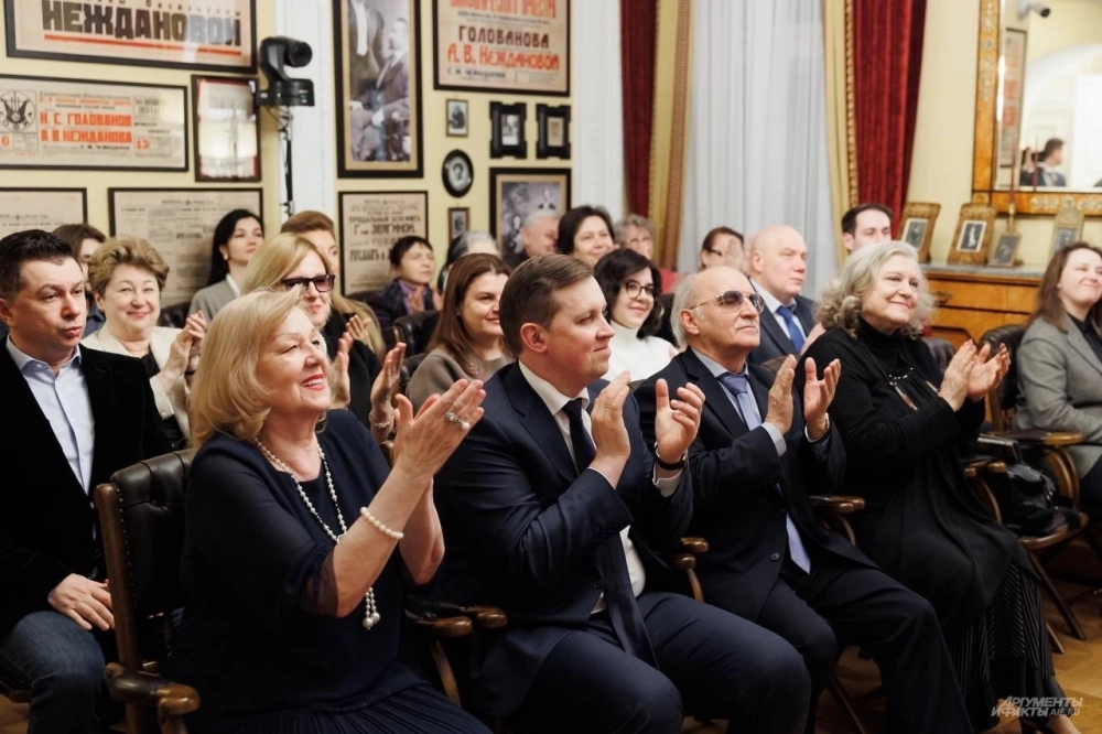 Первый творческий вечер в обновленном пространстве кабинета Неждановой собрал созвездие выдающихся деятелей отечественной культуры. Среди гостей были народная артистка России Людмила Иванова и заслуженная артистка РФ и Украины Галина Черноба. Профессиональное сообщество представили Владислав Ступак, известный своими инновационными выставочными проектами в «Геликон-опере», и Михаил Агин, возглавляющий кафедру сольного академического пения в РАМ им. Гнесиных. Среди почетных участников вечера был и Александр Рыжинский, возглавляющий легендарную Гнесинку — alma mater многих прославленных музыкантов.