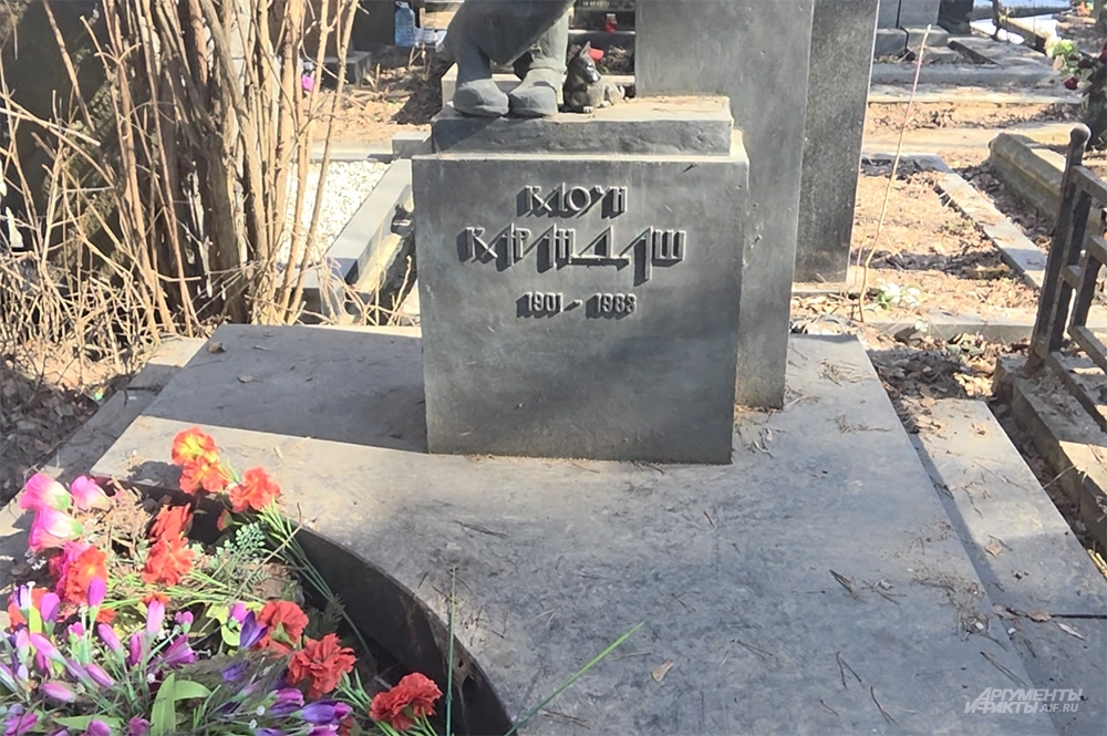 Над участком возвышается бронзовая фигура самого артиста с черной собачкой. На массивном постаменте высечено только одно крупное слово, затмевающее всё: «КАРАНДАШ», а чуть выше гордое звание — «Народный артист СССР». И лишь скромная приписка ниже напоминает случайному прохожему подлинную фамилию человека, дарившего людям смех.