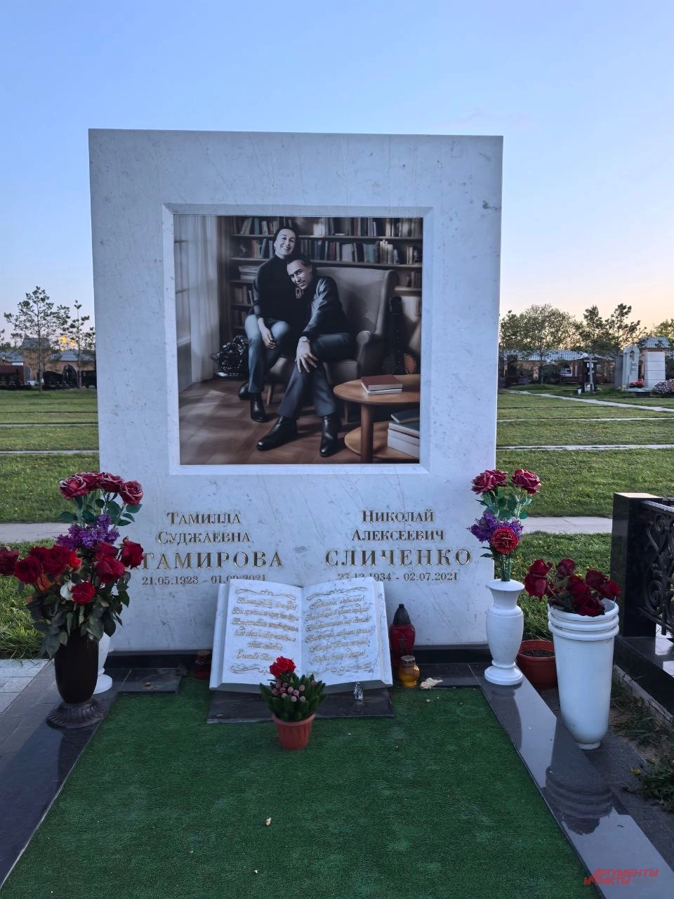 В прошлом году рядом с Вадимом Абдрашитовым на Троекуровском кладбище похоронили умершую от рака актрису Анастасию Заворотнюк. Ее могила красивая и ухоженная, утопает в море цветов. Другой «сосед» режиссера — «первый цыган СССР», актер Николай Сличенко. Он покоится вместе с женой Тамилой. Многие годы родственники актера не могли установить ему памятник и почти не ухаживали за ней. Но теперь на могиле супругов Сличенко возвели шикарный монумент.