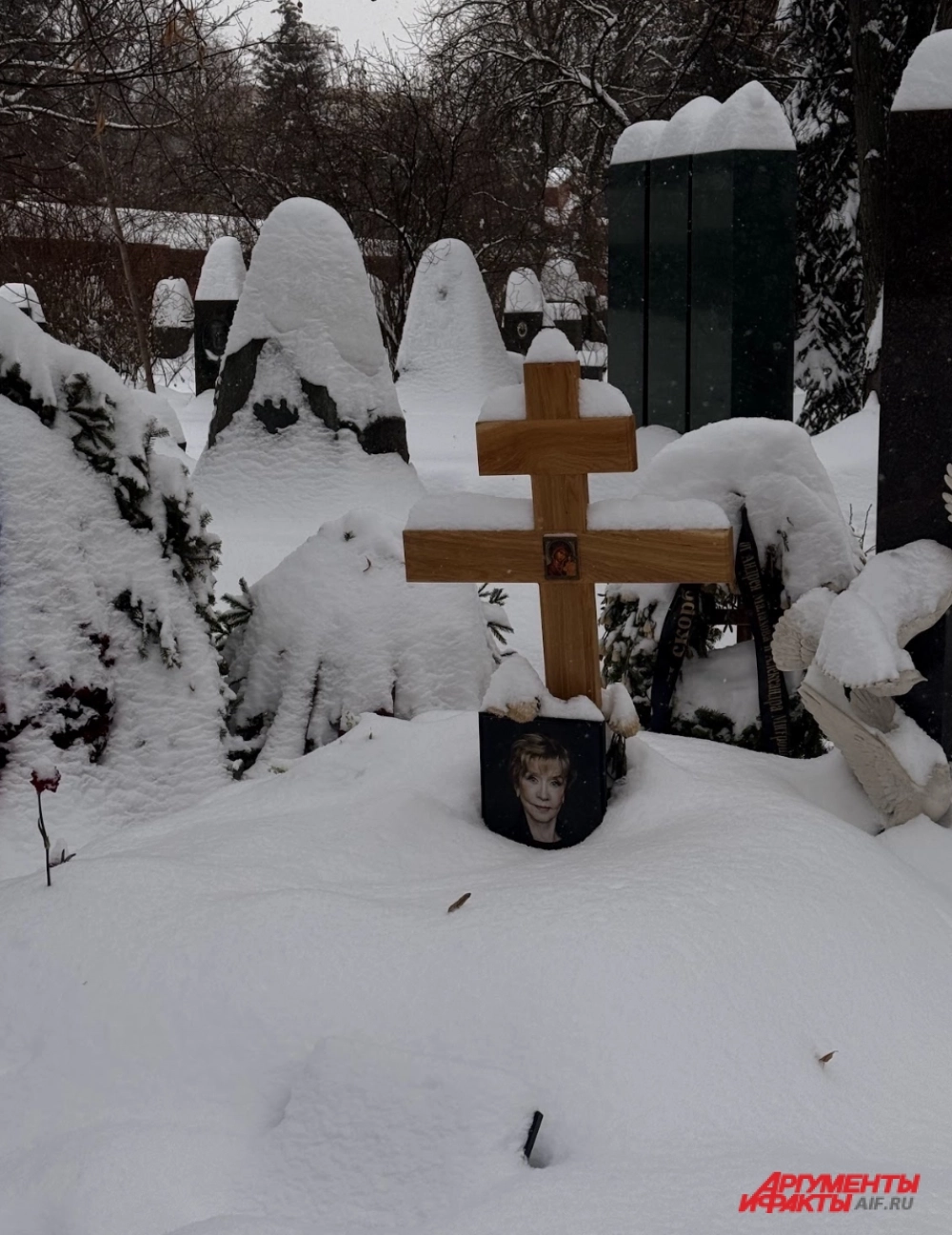 На Новодевичьем кладбище сегодня — не просто снежно, а буквально не пройти и не найти. Корреспонденты aif.ru приехали на могилу Веры Алентовой в день рождения звезды и с трудом нашли её.
