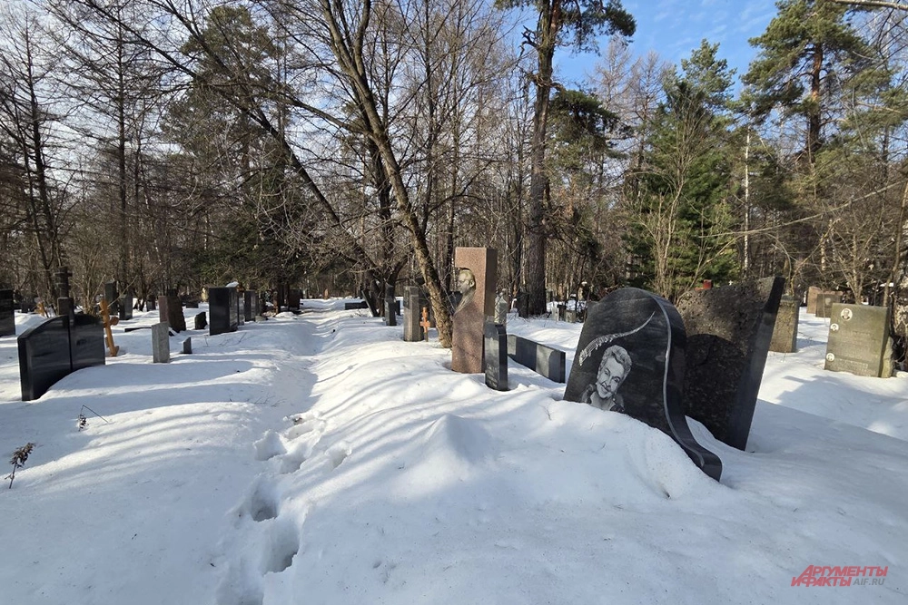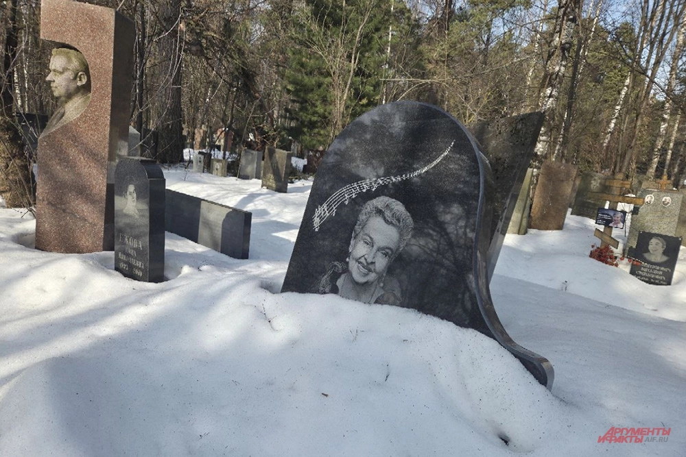 Пробираться к десятому участку Кунцевского кладбища в марте оказалось не так просто. Но если к могилам других знаменитостей протоптаны «народные тропы», то место упокоения Народной артистки РСФСР встречает девственной белизной снега. Здесь нет ни свежих гвоздик, ни венков, ни следов поклонников. Черный гранитный рояль — изысканный монумент, установленный в честь композитора, погребен под сугробами.