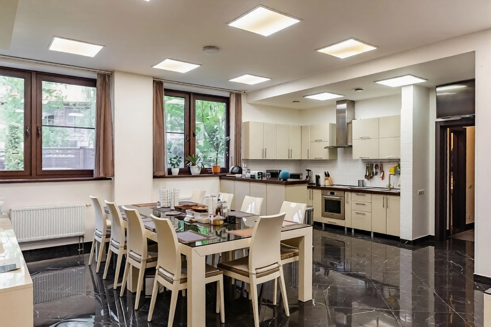Рядом с особняком Лепс построил еще один дом. Его уже подготовили к продаже. Во втором особняке площадью 2756 кв. м оборудовано несколько музыкальных студий, восемь кабинетов, тренажерный зал и комната для персонала. Конечно, еще и четыре спальни. С санузлами.