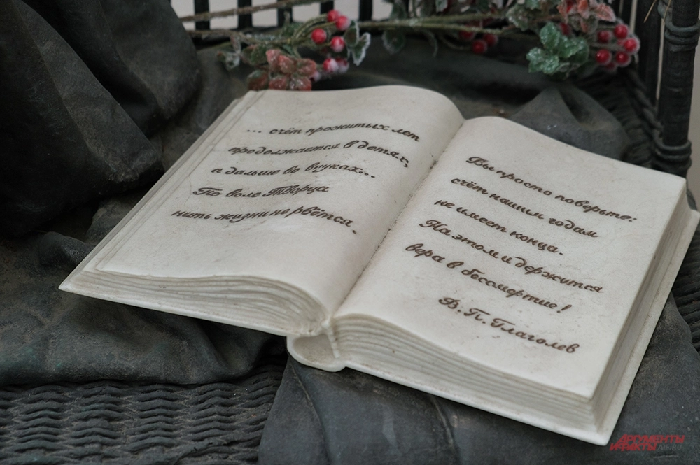 Памятник представляет собой просторную беседку, выполненную из белого камня. У дальней стены — портрет артистки, бронзовое кресло-качалка, на котором лежат шаль и книга. Монумент содержится в идеальном состоянии — там очень чисто. Везде стоят корзины с качественными искусственными цветами, а к Новому году на могилу положили праздничный декоративный венок. А еще в вазе стоят свежие живые цветы — альстромерии.