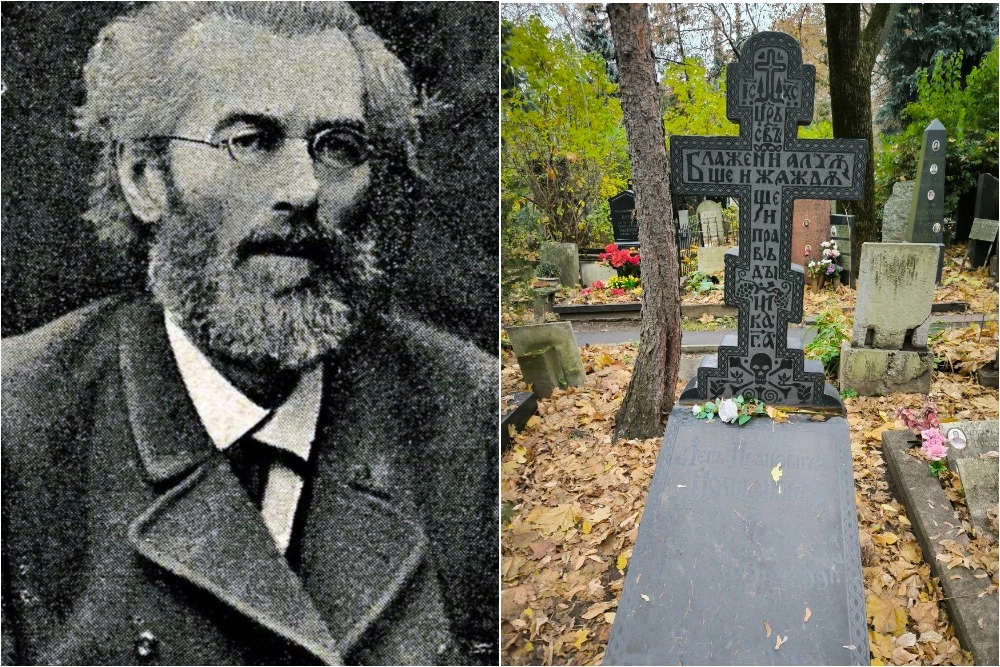 Не менее интересно надгробие Льва Поливанова. Он был основателем дореволюционного частного учебного заведения на Пречистенке, Поливановской гимназии. «Туда, например, Лев Толстой отдал своих детей учиться, — добавил Евдокимов. — Его памятник из двух осей — табличка с именем и крест. Крест размещен на горе Голгофе, месте, где был распят Христос. По поверьям под горой покоились кости первого человека — Адама. На нижней перекладине креста можем увидеть виноградные грозди, символ крови Христа, которая, падая вниз, окропила кости первого человека, и тем самым человеческий грех был прощен. Самый светлый символ на кладбище, не про смерть, а про вечную жизнь, что даровал нам бог, пожертвовав своим сыном».