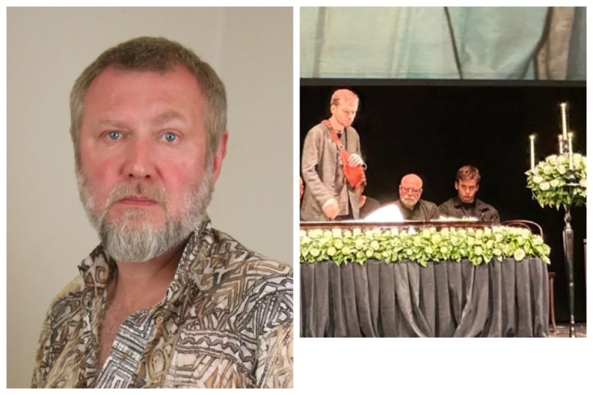 «Сегодня в зале у нас присутствуют коллеги, почитатели таланта, конечно же, семья. Вот с таким выдающимся человеком, который так резко нас покинул, мы сегодня с вами прощаемся», — обратился он к залу, после чего был объявлен свободный микрофон.