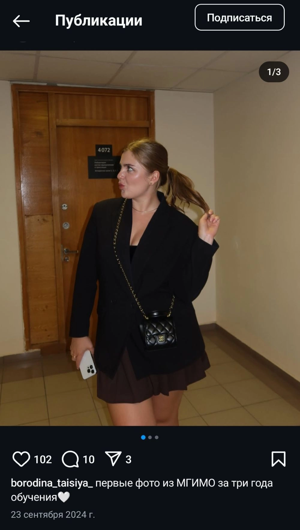«Первые фото из МГИМО за три года обучения», — написала подруга Таисия в соцсетях.