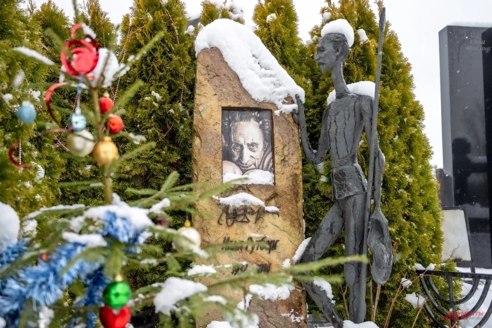 Но даже в этой ледяной серости декабрьского погоста ощущается приближение самого любимого российского праздника. То тут, то там на могилах сверкают яркими шариками новогодние ёлочки. Праздничными атрибутами украшены и могилы некоторых знаменитостей.