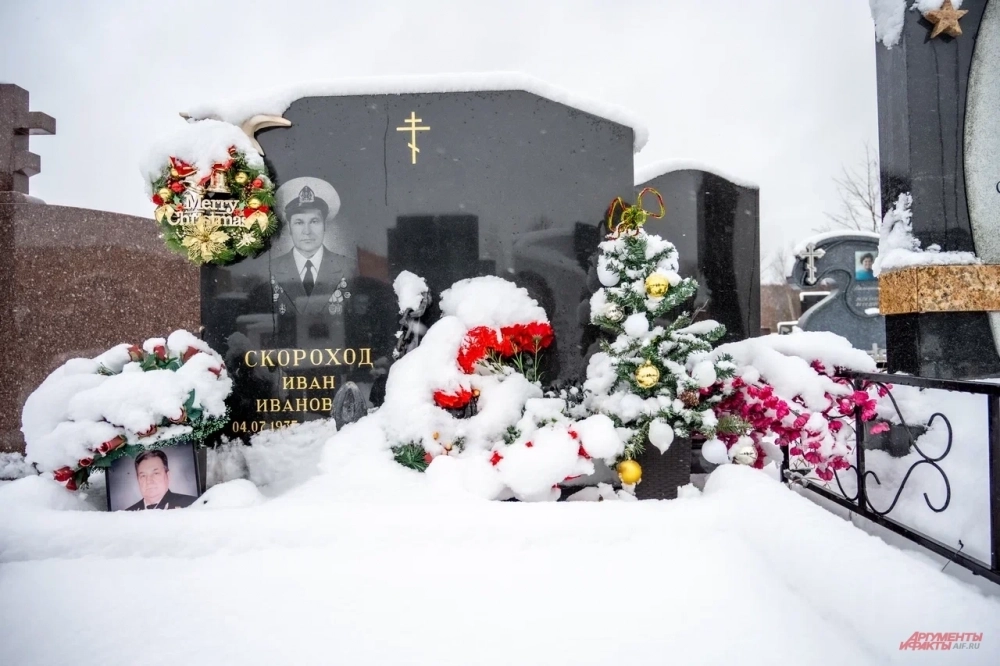Начинал в «Мурмансельди», прошел все ступени — от матроса до капитана-флагмана. Был представителем Министерства рыбного хозяйства в Германии и Анголе. А закончил свой трудовой путь Скороход в 2015 году в должности директора учреждения, курирующего все рыбохозяйственное образование в России. Судя по всему, Иван Скороход был очень позитивным человеком, которого любили родственники. Новогодние ёлочки стоят на могилах знаменитого акробата и дрессировщика медведей Виталия Воробьева, ученого-востоковеда Нодари Симония, генерал-лейтенанта авиации Николая Цымбала, бывшего директора психоневрологического пансионата Игоря Сырникова, крупного застройщика Михаила Анастасиади, полковника ВДВ Игоря Кашина и многих других обитателей Троекуровского кладбища. В кладбищенском магазинчике, наряду с венками и букетами, продаются и новогодние ёлочки. Цена — от 7 500 рублей. Продавец сказала, что традиции украшать могилы к Новому году уже почти два десятка лет.
