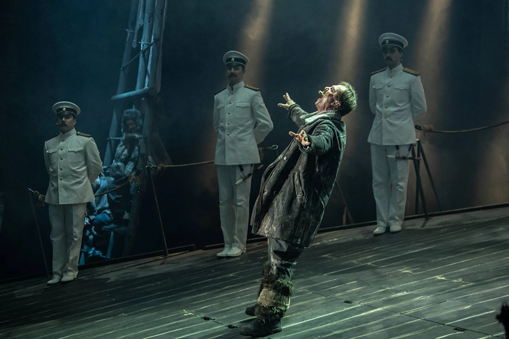 В музыкальной драме удивительным образом сошлось все: и прекрасная музыка в исполнении живого симфонического оркестра, и отличные актерские работы, и смелая сценография, и оригинальные постановочные решения. Впечатляют живые картины в современных 3D-технологиях: громадины ледяных торосов, застилающая глаза пурга, даже нападение белых медведей... Но, пожалуй, главное — симбиоз двух уникальных творческих личностей: великого, не побоимся этого слова, композитора и постановщика из плеяды штучных театральных режиссеров с академическим музыкальным образованием, ставившего оперы на лучших сценах мира.