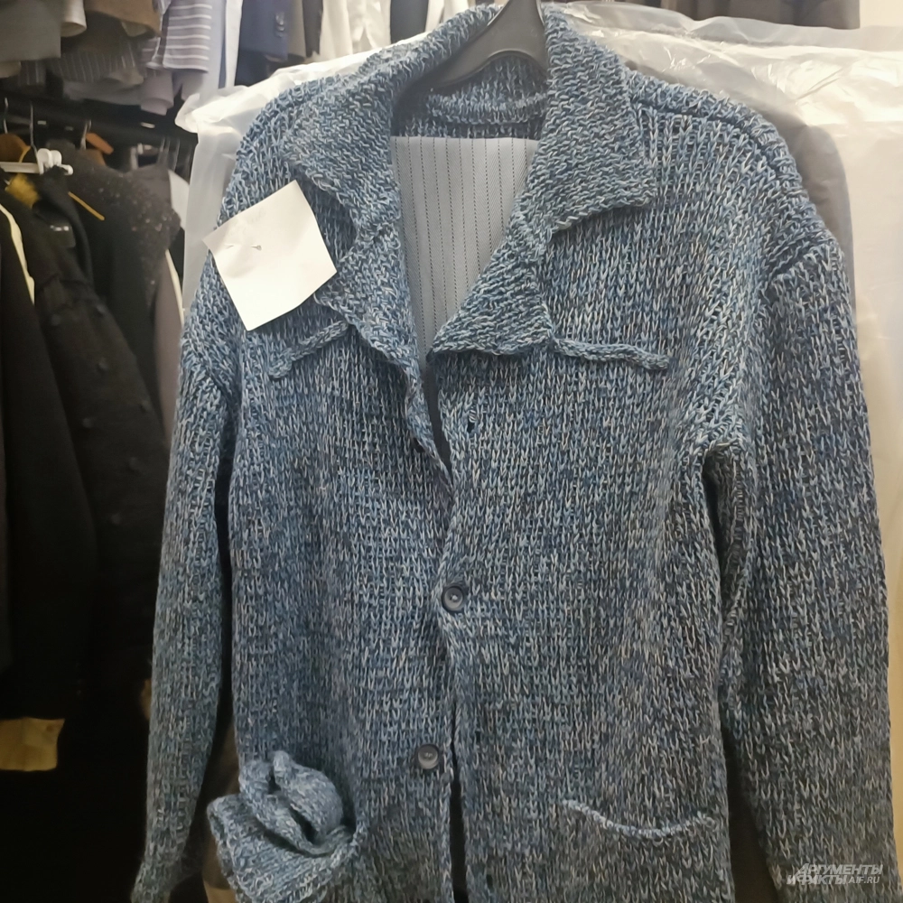 Заглянули мы и в хранилище мужских костюмов, где собраны сотни рубашек, пиджаков, кардиганов, брюк… Особо заинтересовали журналистов специальные изобретения - подкладки под костюм: для худосочных актеров, вынужденных играть героев с животиком или, напротив, призванные скрыть лишнее. На одежде встречались шпаргалки, например «Иван Стебунов» на предназначенном ему серо-голубом вязаном кардигане.
