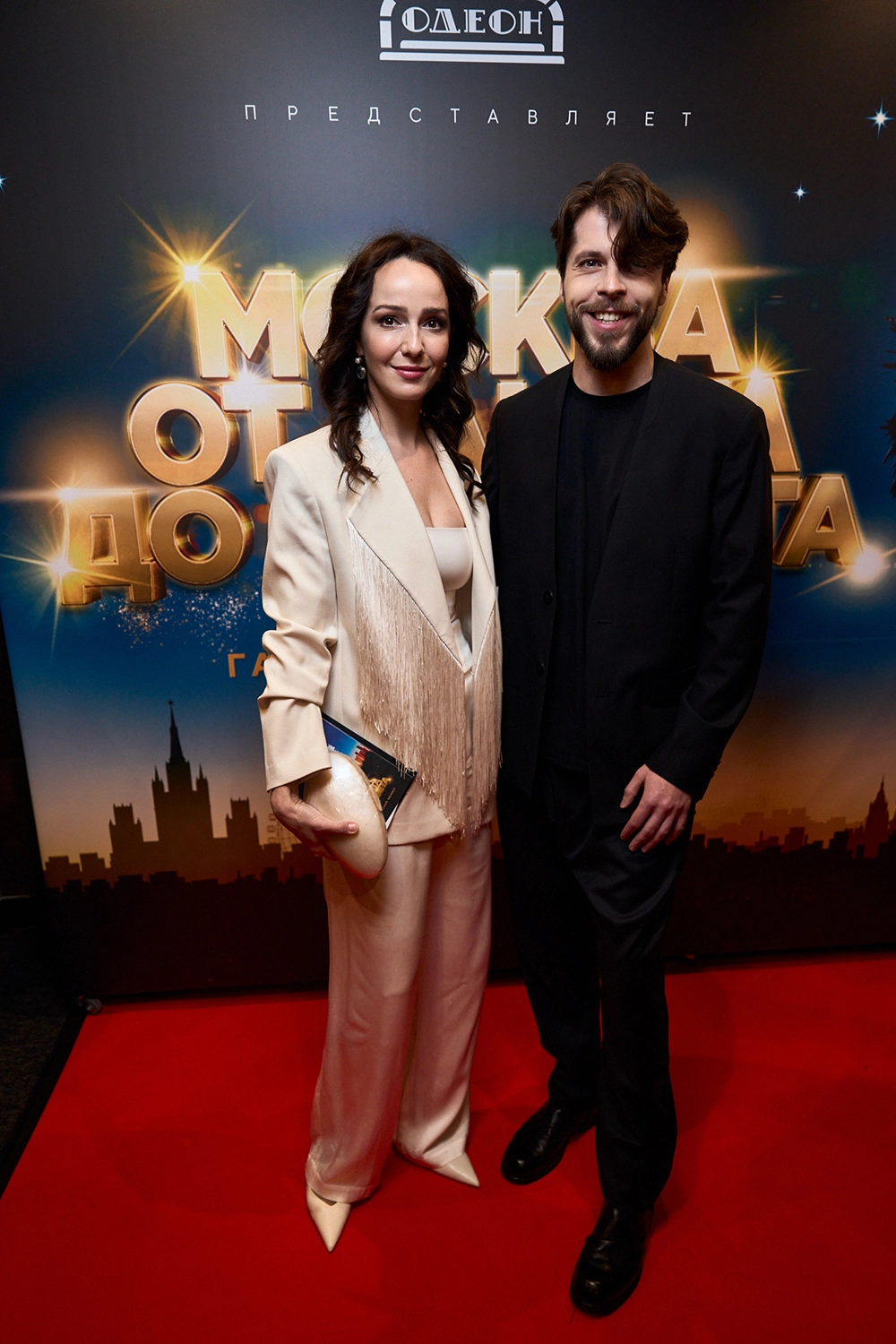 Балетмейстер и народный артист России Сергей Филин выбрал черный классический костюм и темные очки. Маэстро пришел на премьеру вместе с супругой, балериной Большого театра Марией Прорвич.