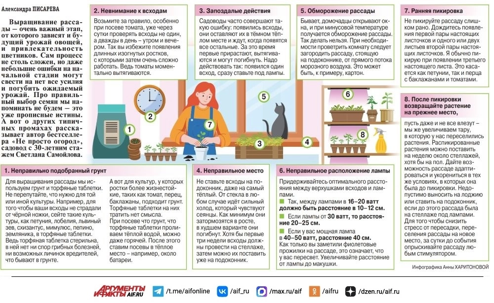 Согласно Лунному календарю дачника, 6 марта — еще один удачный день для посевов семян на рассаду. Все дачники знают, насколько это важно для будущего урожая. Но почему одни получают крепкие сеянцы, а другие — вытянувшиеся, бледные и болезненные ростки? Вместе с садоводом Светланой Самойловой собрали главные ошибки при выращивании рассады, которые допускают даже опытные огородники.