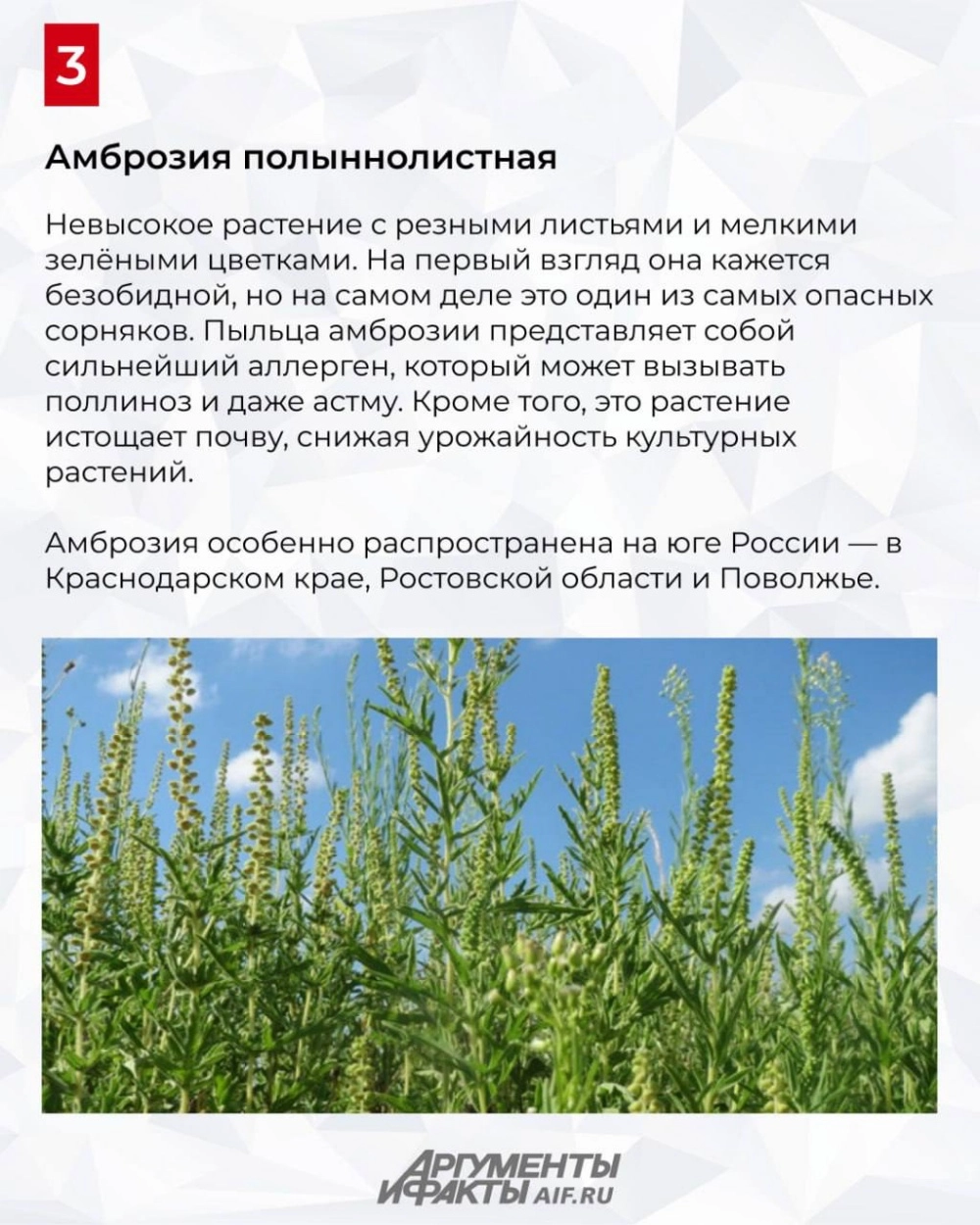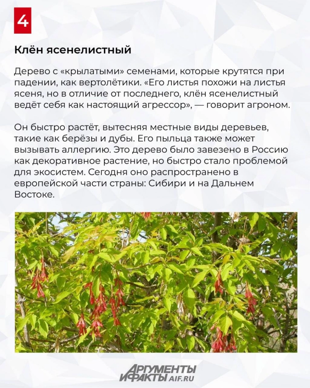 Про опасность борщевика знают сегодня, кажется, школьники. Однако некоторые не понимают, чем же «провинились» другие растения из «черного списка» — например, клен или амброзия. Составили для вас полезную памятку, которая расставляет точки над «и».