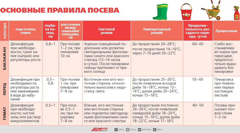 Собрали основные правила посева томатов, баклажанов и перца в одну полезную таблицу.