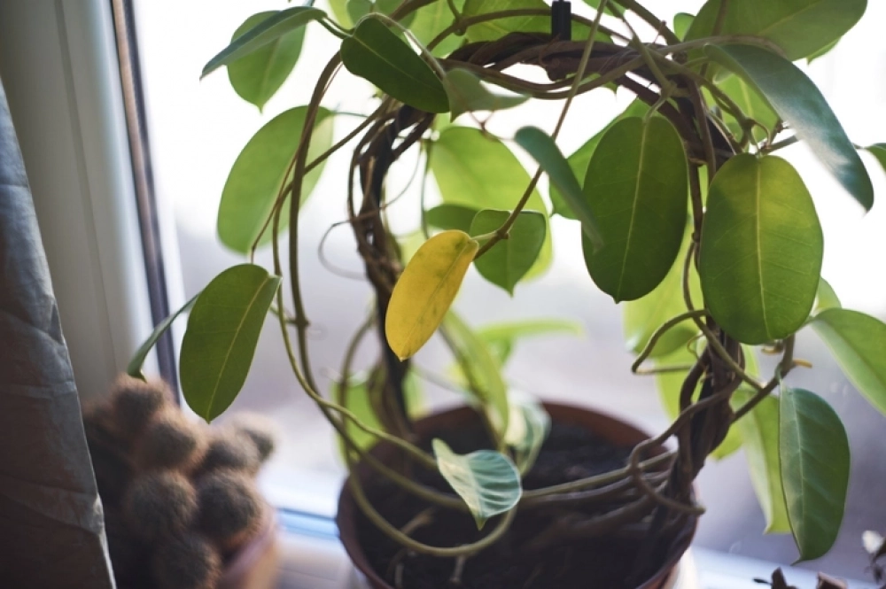 Если земля регулярно пересыхает до твёрдого кома, листья сначала теряют упругость, затем желтеют по краям. Вода при поливе может стекать по стенкам, не пропитывая середину. Весной ситуацию усугубляет сухой воздух от отопления — лист испаряет влагу быстрее, чем корни её получают.