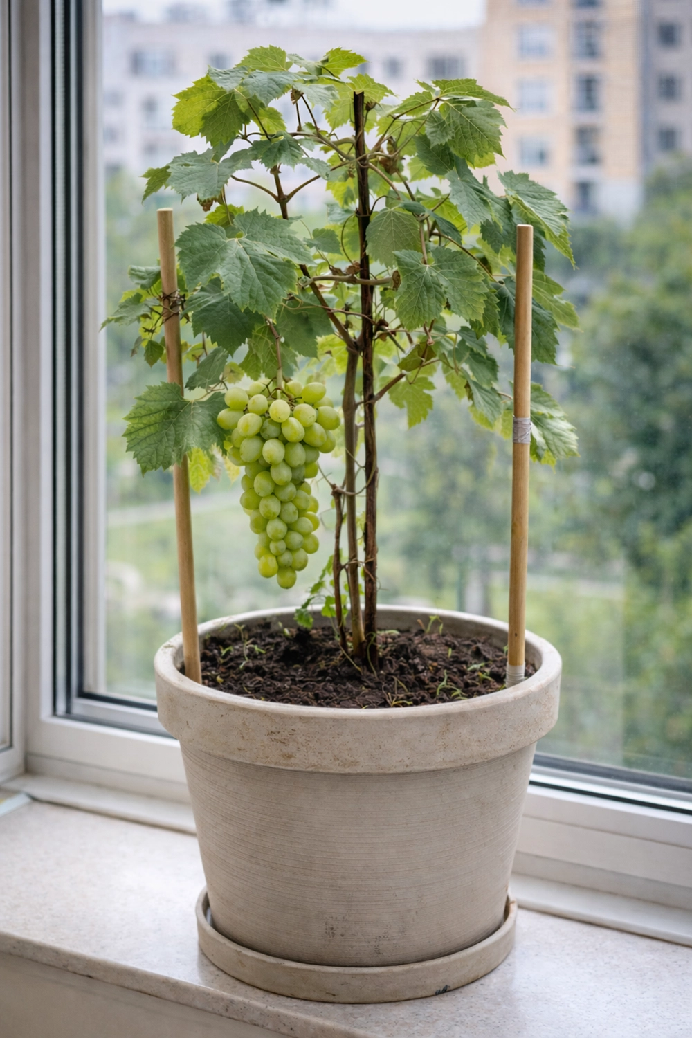 Комнатный виноград — это полноценная агротехника, а не декоративный прием. При грамотном подборе сорта, соблюдении периода покоя и базового ухода он стабильно растет, нормально цветет и дает урожай. При этом виноград хорошо переносит сухой воздух отапливаемых помещений и органично вписывается в интерьер.