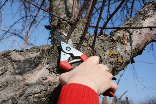 Если февраль выдался относительно спокойным — без затяжных морозов и сильных снегопадов, — можно приступать к обрезке плодовых деревьев и ягодных кустарников. Растения в это время ещё находятся в состоянии покоя, поэтому обрезка переносится ими легче, чем весной, когда начинается активное сокодвижение. Однако есть важное условие: температура воздуха в день работ должна быть не ниже —5°C. Погода — сухая, без осадков, желательно солнечная.