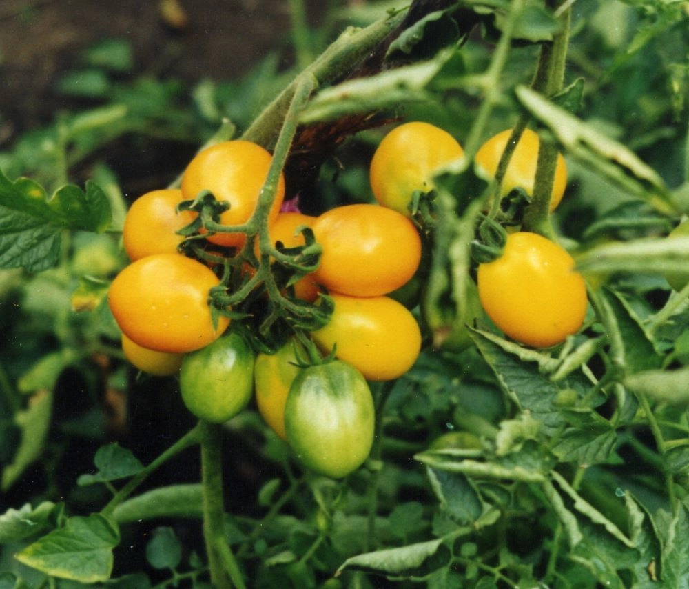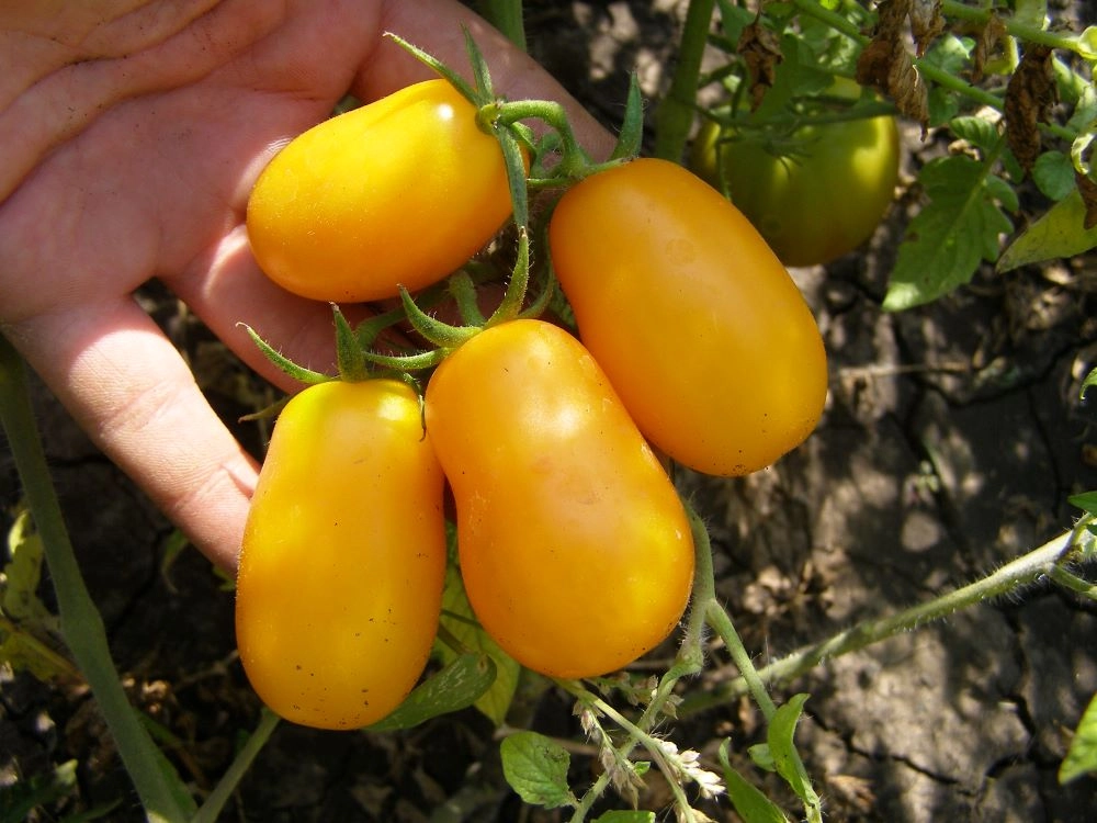 Сорт с удлиненными желтыми плодами, собранными в кисти до 10 штук. Масса плодов 100–150 г. Отличается привлекательным внешним видом и сладким вкусом.