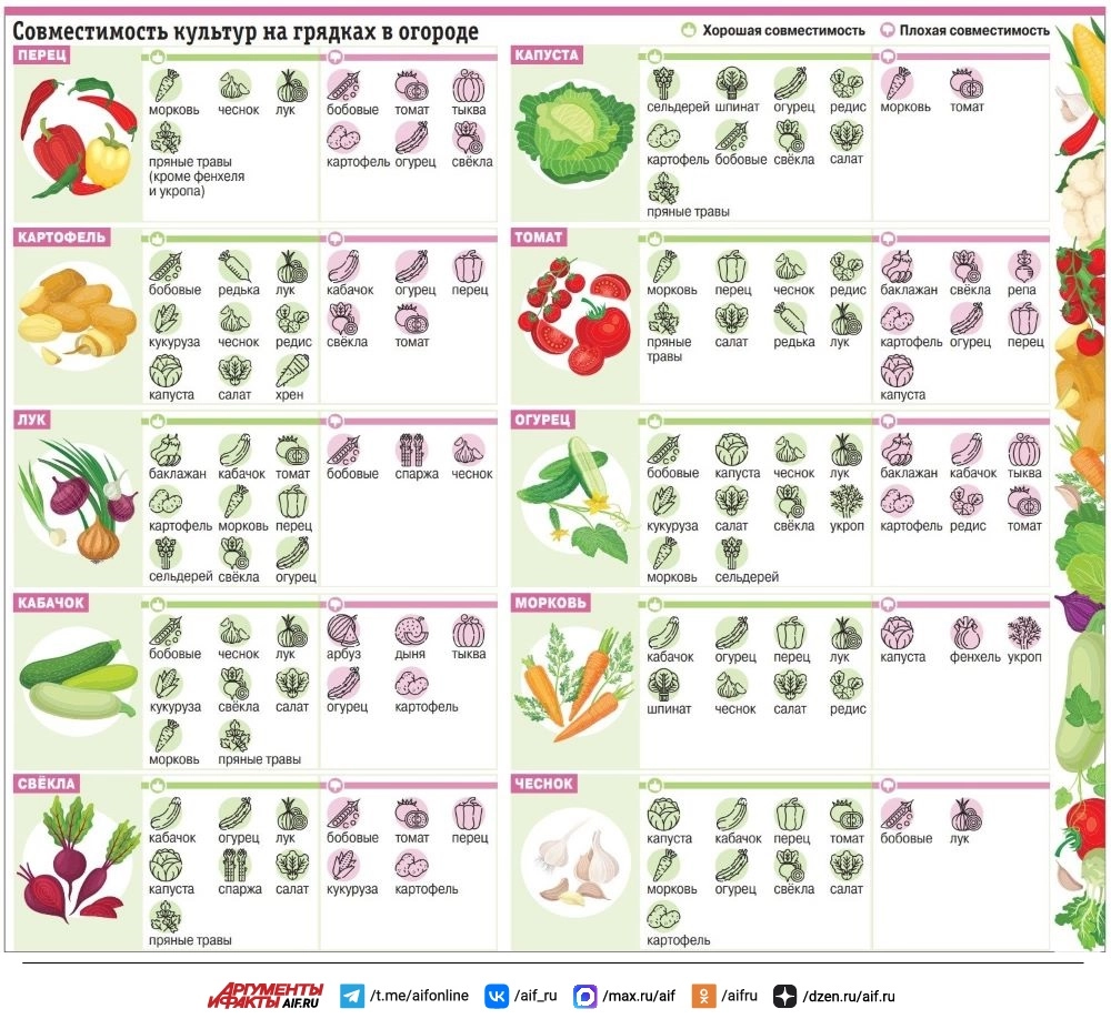 Растения — как люди: в хорошей компании расцветают и становятся лучше даже без видимых причин. Но бывают и такие «соседи», которые не выносят присутствия рядом: они отбирают влагу и питание, привлекают общие болезни, из‑за чего их более слабые «компаньоны» чахнут на глазах. Поэтому сейчас, когда многие дачники уже прикидывают план будущих посадок, важно помнить: правильное соседство растений — залог будущего богатого урожая. Вместе с садоводом с 20-летним стажем Татьяной Светлой разбираемся в принципах совместимости овощей.