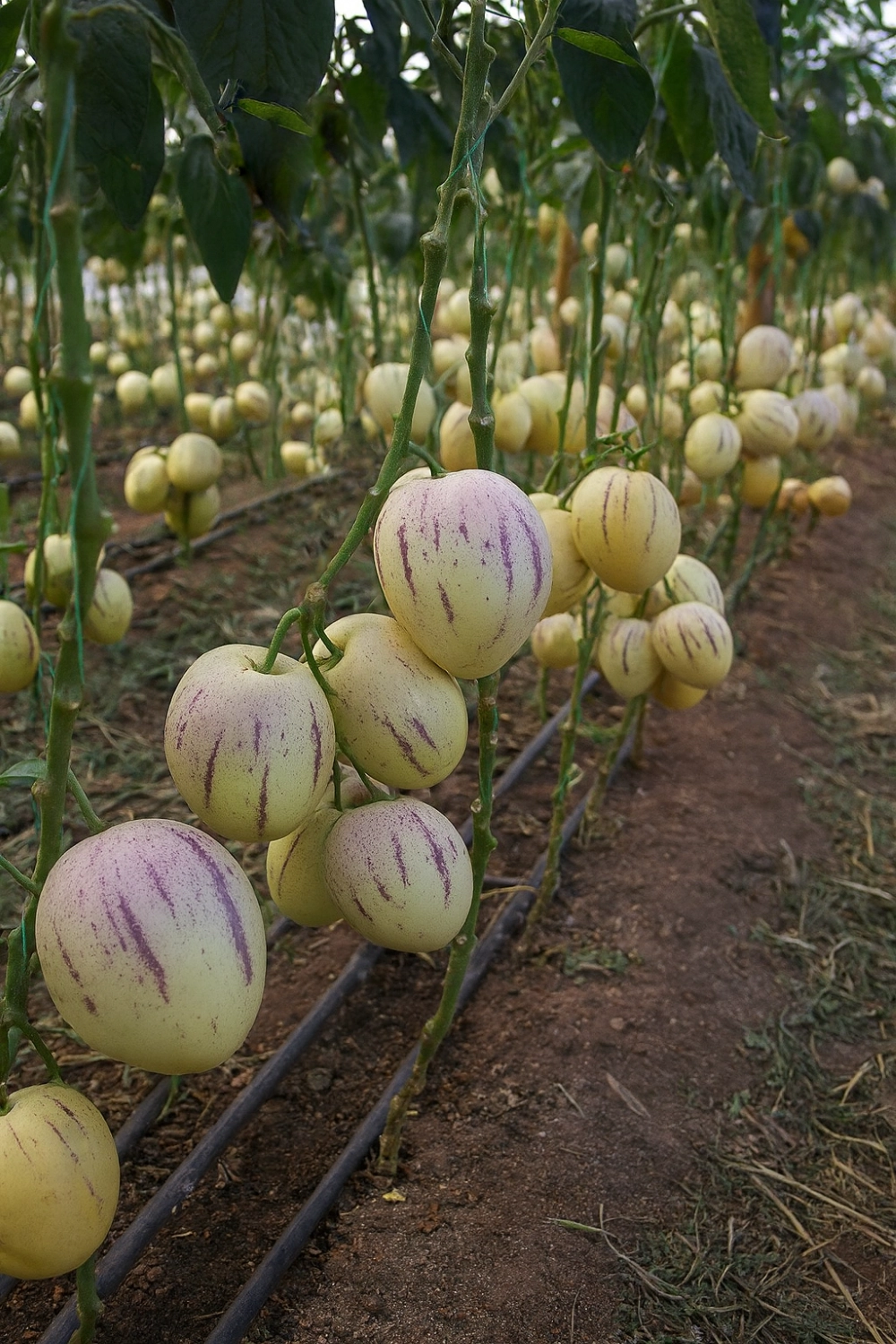 Почва для пепино должна быть рыхлой, нейтральной кислотности и плодородной (подходит любой грунт для рассады томатов и перцев). Для нормального роста и опыления влажность воздуха поддерживают на уровне около 70%, сочетая её с регулярным проветриванием. При необходимости проводят искусственное опыление.