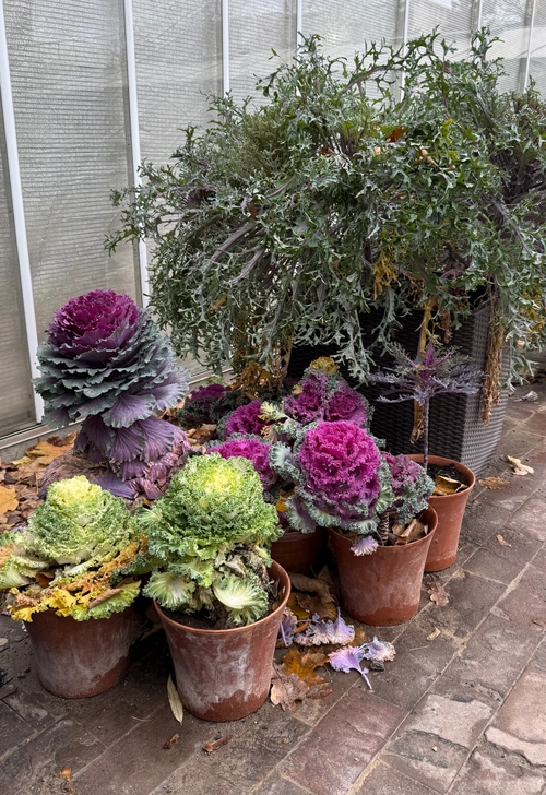 Интересный приём — пересадка декоративной капусты осенью в горшки. Если выкопать растения с комом земли и поставить их на балкон или подоконник южного окна, они будут радовать глаз до глубокой зимы. В комнатных условиях капусте нужны максимум света и умеренный полив.