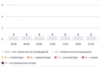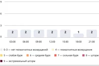 В четверг будет магнитная буря (Кр 5), а в пятницу магнитосфера возмущённая (Кр 4). При болезнях сердца и сосудов в эти и смежные дни надо особенно тщательно следить за здоровьем и строго соблюдать назначения врача.