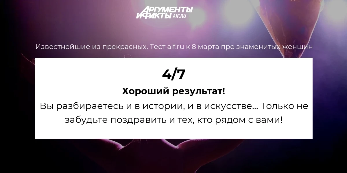 Что вы знаете о знаменитых женщинах? Хорошо ли вы разбираетесь в тех, о ком столетиями слагают стихи, пишут картины и романы? Проверьте свои знания с aif.ru!