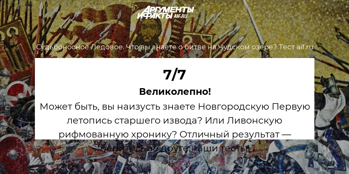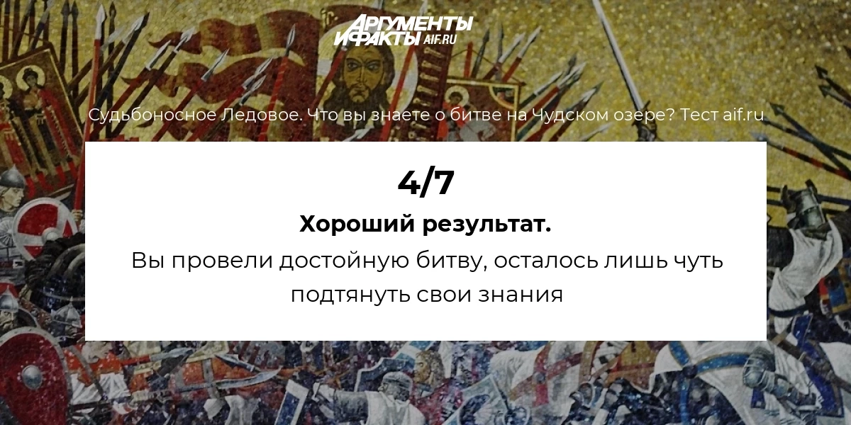 Судьбоносное Ледовое. Что вы знаете о битве на Чудском озере? Тест aif.ru
