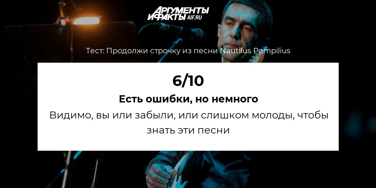 А хорошо ли вы знакомы с творчеством музыканта? Проверить это вы сможете, правильно выбрав окончания (или начала) строчек песен.