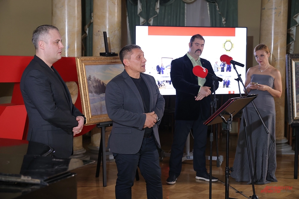 Выставка в АиФ благотворительная — средства, вырученные за работы, будут направлены на благотворительные цели. Две работы еще до официального открытия экспозиции приобрел благотворитель Олег Путилов. О благотворительном характере выставки подробно рассказал председатель фонда «Симфония победы» Юрий Михайлович Перов. Он также входит в Комиссию по вопросам патриотического и духовно-нравственного воспитания детей и молодежи Совета при Президенте Российской Федерации по межнациональным отношениям и выступил с приветствием от организации, но в начале своего выступления выразил благодарность меценату за покупку произведений художника. «За высокую гражданскую позицию, за участие и поддержку, Олега Путилова можно по праву считать продолжателем трудов во благо России в духе Саввы Морозов и Саввы Мамонтова! Деньги будут направлены на приобретение протезов для воинов, участвующих в специальной военной операции. Эта инициатива имеет не только практическое, но и глубокое социальное значение. Реабилитация и адаптация вернувшихся с фронта бойцов — сложная задача, требующая значительных усилий со стороны общества. Когда наши защитники возвращаются домой, они заслуживают не просто поддержки, а возможности вернуться к полноценной жизни. Протезы помогают им вновь обрести независимость и возможность вести полноценную жизнь. Каждый проданный холст — это не только произведение искусства, но и возможность для кого-то обрести надежду и вновь стать самостоятельным, активным, обрести семью, заняться любимой профессией. Искусство на наей выставке становится связующим звеном между художником, меценатами и теми, кто нуждается в поддержке. Оно вдохновляет, объединяет и напоминает о важности человеческой жизни», — отметил он.
