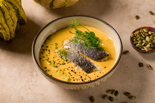 Тыквенный суп-пюре с белой рыбой