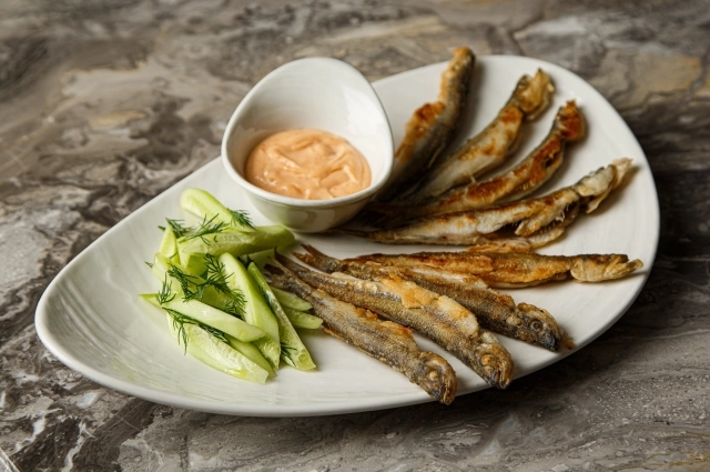 Второй главный способ приготовления — жарка. «Корюшку нужно обвалять в муке и обжарить в большом количестве растительного масла до золотистой корочки, — объяснил Палесика. — Такой способ позволяет сохранить её естественный вкус и текстуру. Запанировали и жарим до хрустящей корочки в большом количестве масла. При подаче я добавляю свежие очищенные огурцы с укропом, которые поливаю оливковым маслом и солю. И еще можно добавить к жареной рыбе соус айоли с печеным чесноком, который прекрасно подчеркивает вкус».