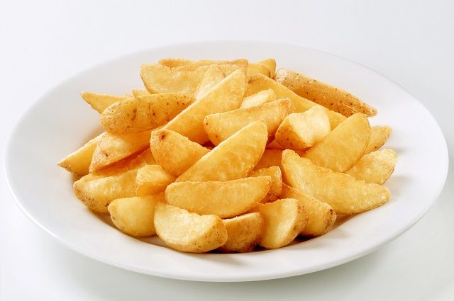 Шаг 1. Картофель хорошо помыть, нарезать толстыми дольками.