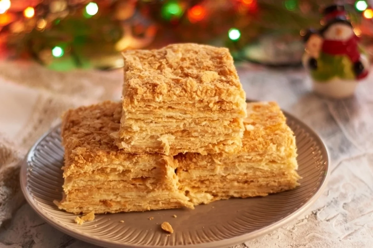 Самый новогодний торт — «Наполеон». Его делают из слоеного теста, прослаивают заварным кремом. А потом зачастую выдерживают в холодильнике. В результате коржи промокают, и торт получается слишком мягким и мокрым. А хочется, чтобы слоеное тесто хрустело и держало форму. Как сделать хрустящий «Наполеон» с нежным кремом, рассказала Алена Оциферова, шеф-кондитер гастропаба «Бибирево».