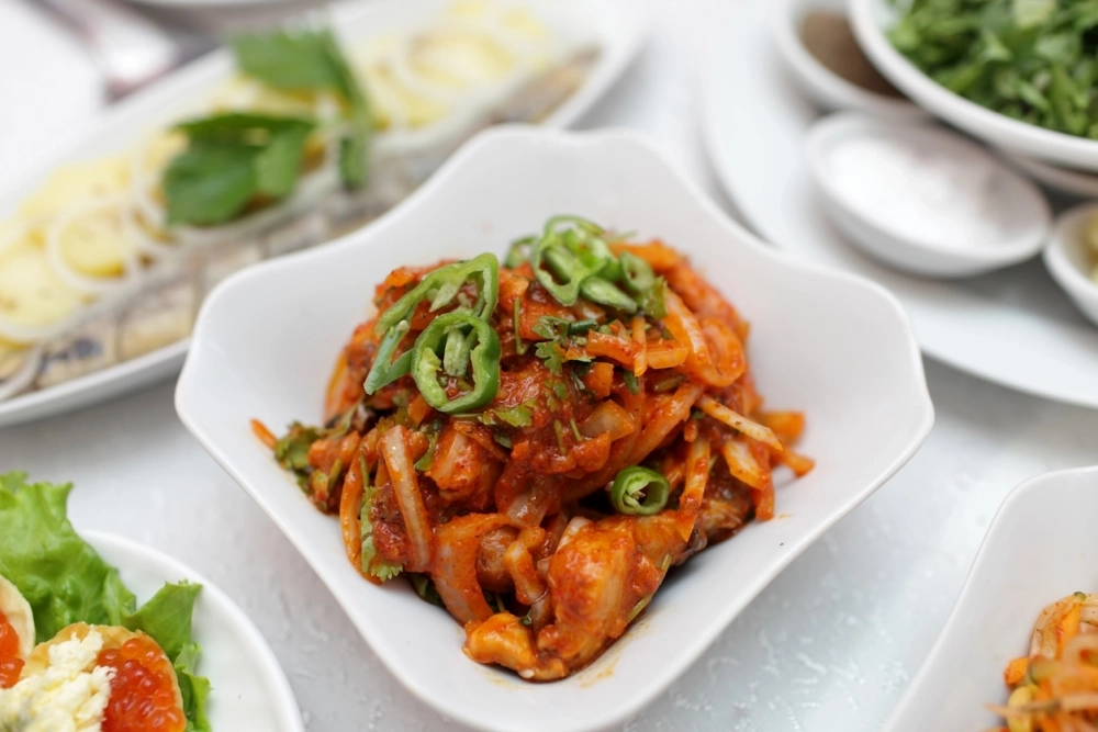 - Начинаем с подготовки хе. Для этого нарежьте филе судака на небольшие кусочки (примерно 2–3 см).