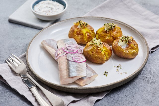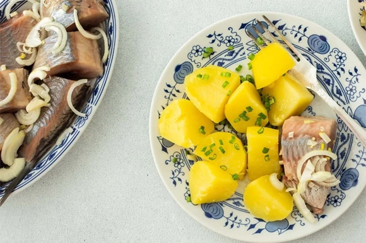 Сельдь бочкового засола с горячим картофелем