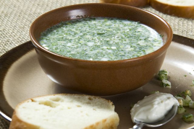 3Заправить мацони, долить газированной водой. Посолить. Подавать с кусочком льда.