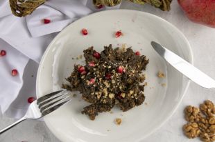 4Очищенные грецкие орехи замочить в теплой воде, удалить пленку, мелко нарезать и добавить в авелук. Можно подавать как в холодном так и в горячем виде.
