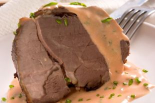 Вынуть из маринада мясо, обтереть и запечь в духовке. Сначала поставить на температуру 250 С, до образования корочки, а потом температуру уменьшить до 180 С.