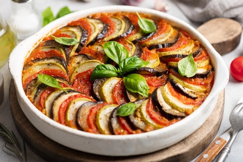 9. Достаньте рататуй из духовки и дайте ему немного остыть (10-15 минут). Это позволит вкусам «пожениться», и блюдо будет легче нарезать.