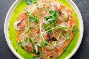 Карпаччо из лосося с кунжутно-апельсиновой заправкой