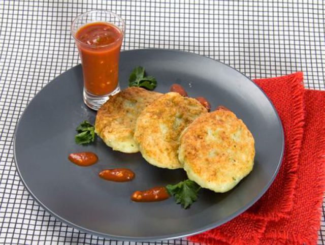 Нагреть в сковороде еще масло и выложить столовой ложкой картофельную массу, формируя из нее толстенькие котлетки.