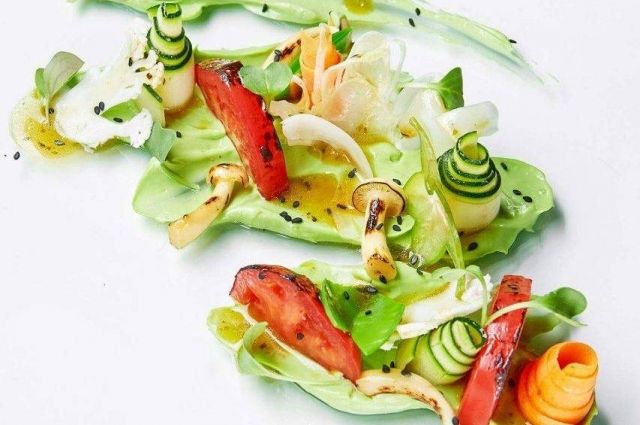 Овощной салат с пюре из авокадо
