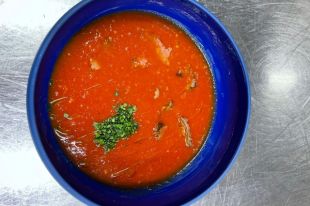 2Далее добавить говяжий бульон и пробитые в блендере томаты, варить, пока все ингредиенты не размякнут.