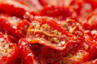 Остывшие помидоры уложить в банку на 1/3. Залить маслом, положить специи и чеснок. Повторить слои до конца банки. Помидоры немного утрамбовать и залить маслом, чтобы оно полностью покрывало их.