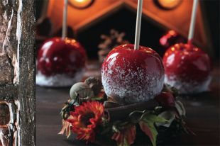 2В каждое яблоко воткните деревянную палочку, опустите в карамель, затем выложите на салфетку.