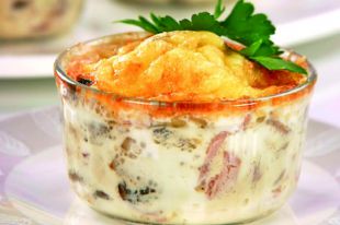 Жульен с грибами, ветчиной и яйцом