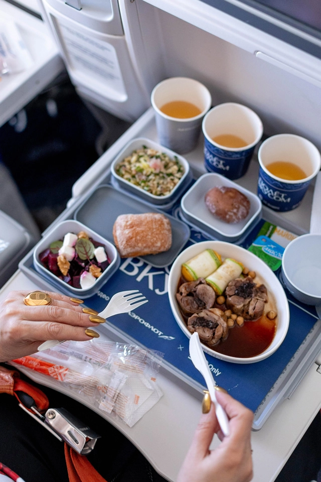 Заходим на борт, где нас встречают очаровательные стюардессы. Рассаживаемся и получаем первые подарки от «Аэрофлота»: набор, где есть сувениры, неразрывно связанные с нашим полетом. Все в ожидании высокой кухни от шеф-повара Дзаго. Он создал для пассажиров специальное бортовое меню, вдохновленное черноморскими традициями.