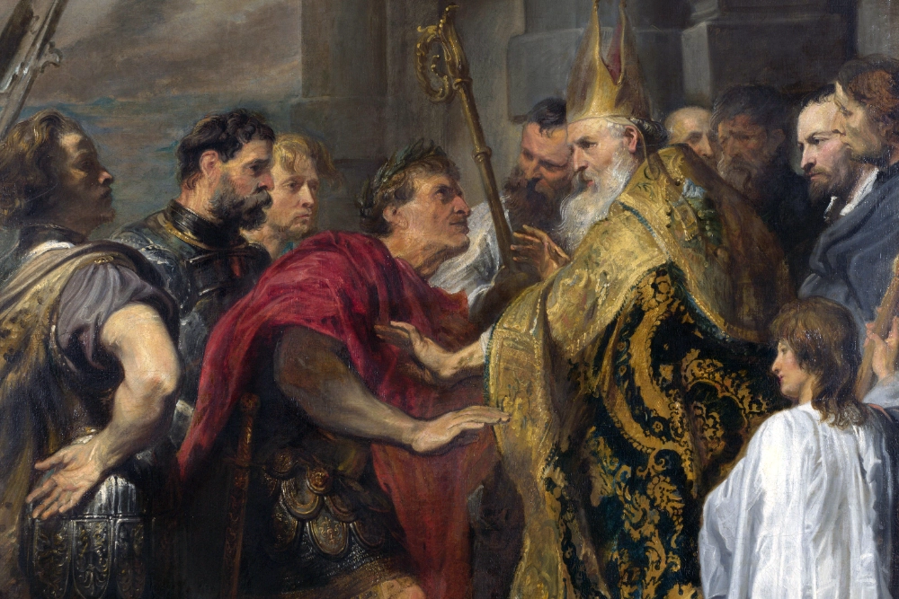 Амвросий родился в Италии в очень богатой семье, принадлежащей к аристократическим кругам, в IV веке. Он решил посвятить свою жизнь Богу, а потому когда стал епископом в Медиоланье (сейчас это Милан), то пожертвовал все свое имущество церкви. До конца жизни он вел аскетичный образ жизни. К тому же он был совершенно потрясающим проповедником, способным обратить грешника к вере, а заблудшего вернуть в лоно церкви одним разговором. Он был способен творить чудеса и исцелять. Все эти достоинства привели к тому, что его почитали святым еще при жизни. В его наследии большое число богословских трудов и мистических гимнов. После его смерти, а умер Амвросий сам и в старости, его мощи были положены в храме, который он же сам и построил. Затем мощи перенесли в специально возведенную базилику святого Амвросия.