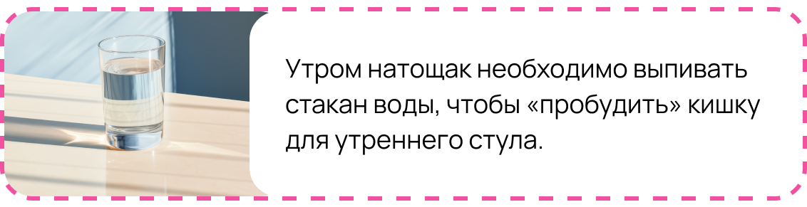 При этом в туалете нужно создать психологический покой – никаких гаджетов или книг! Важно восстановить биологический ритм работы кишечника: выработать условный рефлекс на акт дефекации при строжайшей пунктуальности.